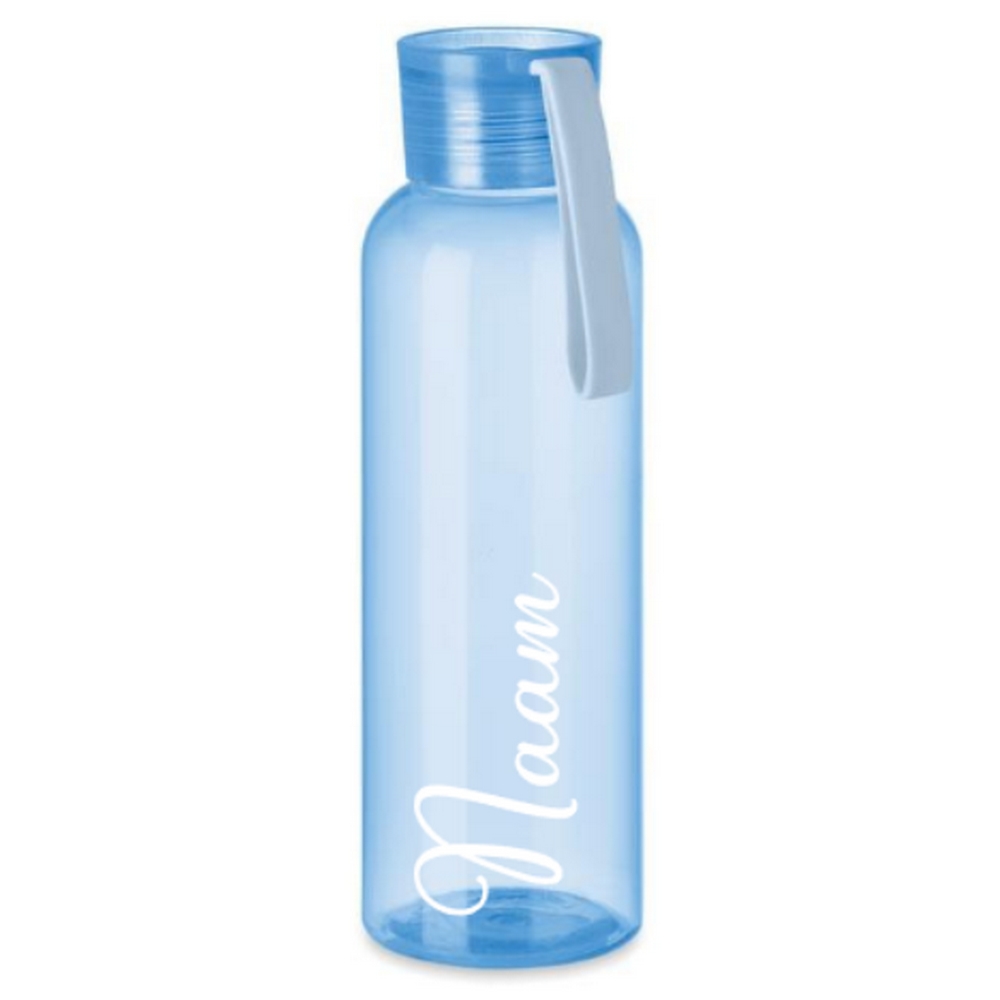 Kunststof drinkfles in de kleur blauw met een inhoud van 500 ml. Deze waterfles is 20 cm hoog en heeft een doorsnede van 6 cm. De dop sluit deze fles lekvrij af. Tevens is een siliconen bandje aan de dop bevestigd. Een toffe drinkfles bedrukt met eigen naam, bedrijfsnaam of andere leuke tekst. Heel handig voor op school, werk of tijdens het sporten.