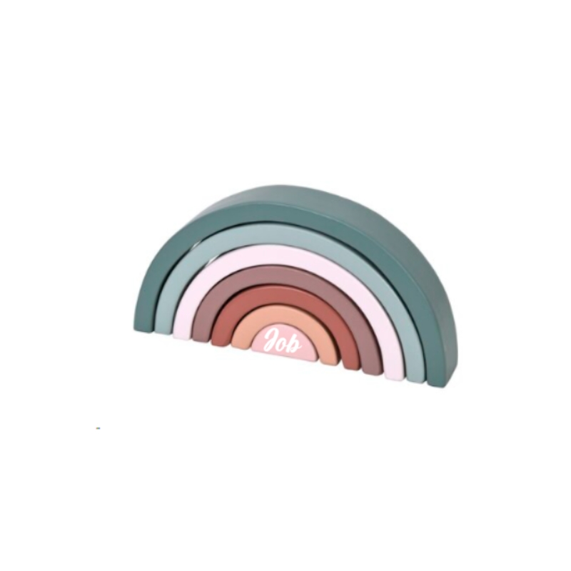 De houten regenboog is een stapeltoren in de vorm van een regenboog. Super leuk om allerlei dingen mee te maken.