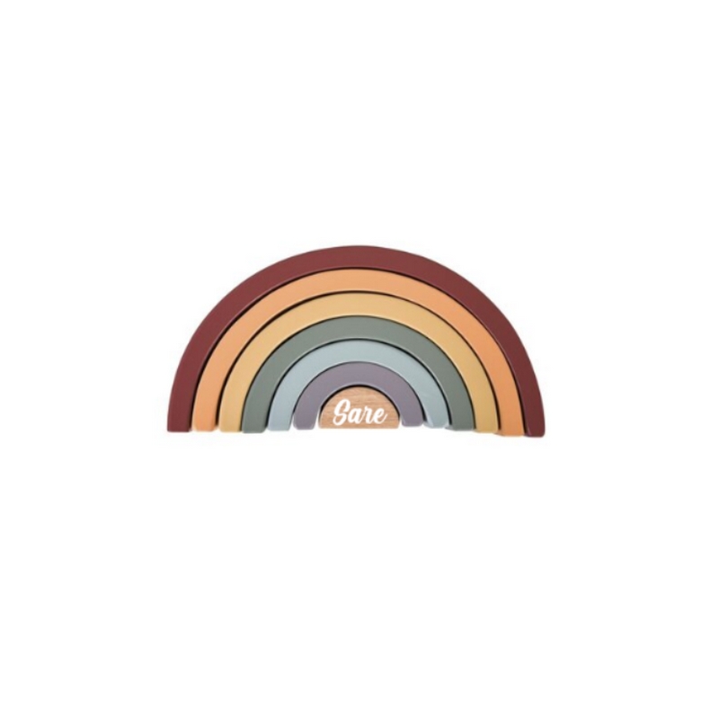 De houten regenboog is een stapeltoren in de vorm van een regenboog. Super leuk om allerlei dingen mee te maken.