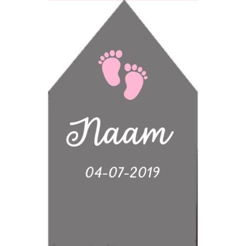 Een stoer houten huisje bedrukt met de naam en geboorte datum. Leuk om als decoratie weg te zetten in de kinderkamer.