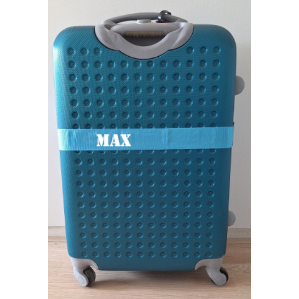 Kofferriem bedrukt met naam of eigen tekst. Door deze super leuke persoonlijke riem herken je je eigen koffer direct. De bagageriem is ca. 165 cm lang en 5cm breed en verkrijgbaar in diverse kleuren.