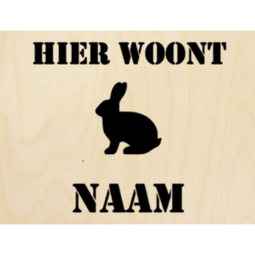 Houten kaart persoonlijk bedrukt met hier woont en de naam van jouw kozijn(en).