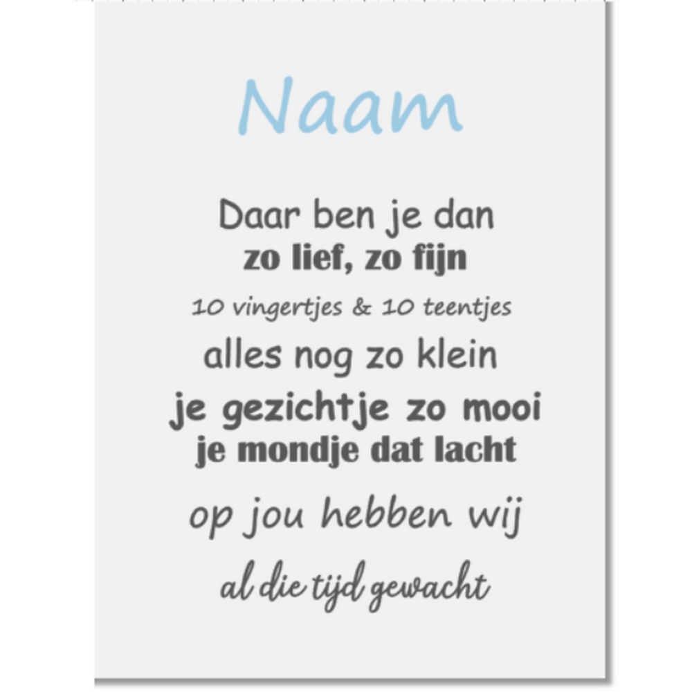 Een mooi bedrukt tekstbord voor de geboorte van een jongen of meisje.