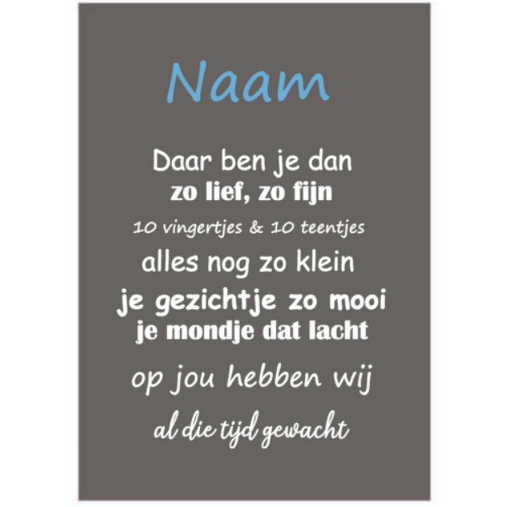 Een mooi bedrukt tekstbord voor de geboorte van een jongen of meisje.